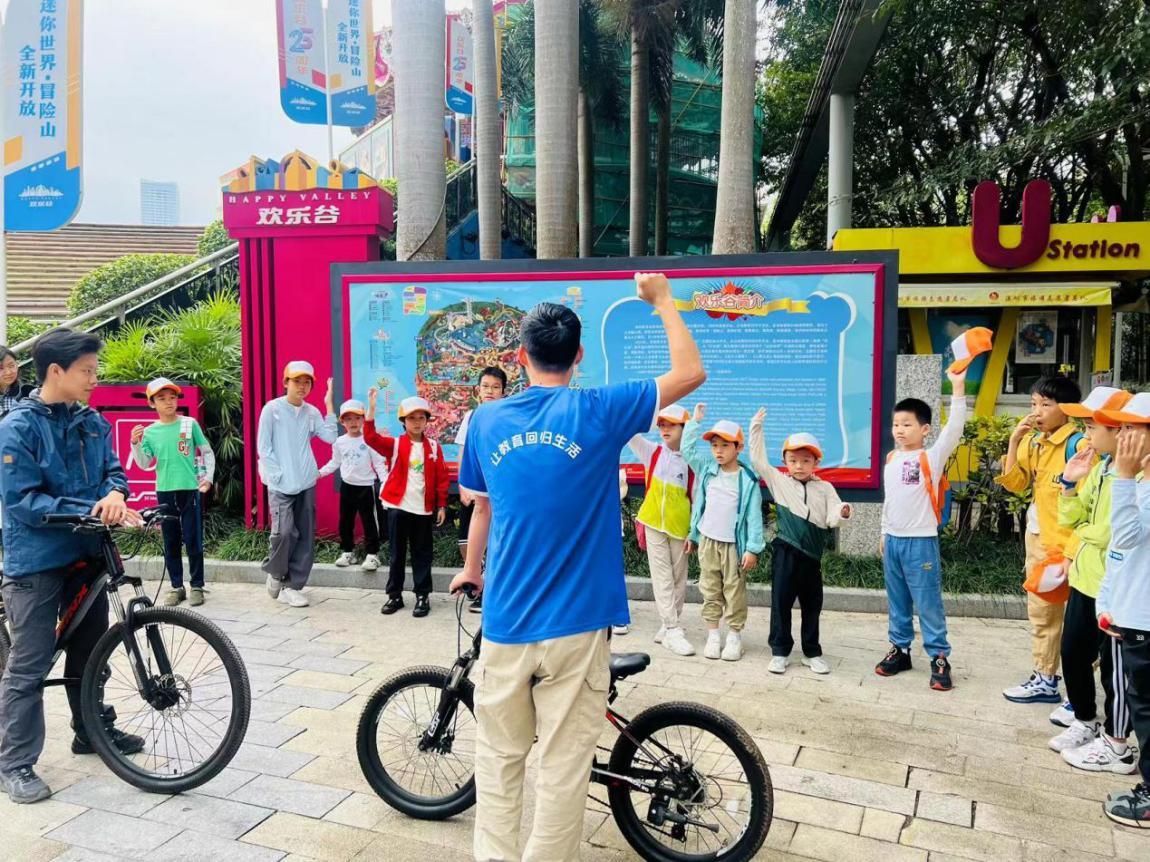 做好一系列准备后,骑行小队整装待发。领队带领孩子们环绕风景优美、封闭安全的燕晗山绿道骑行,并配合上下坡路段训练、S形控车挑战和链条故障学习。骑行少年们在享受运动乐趣的同时,也在勇敢挑战中获得了自我突破。