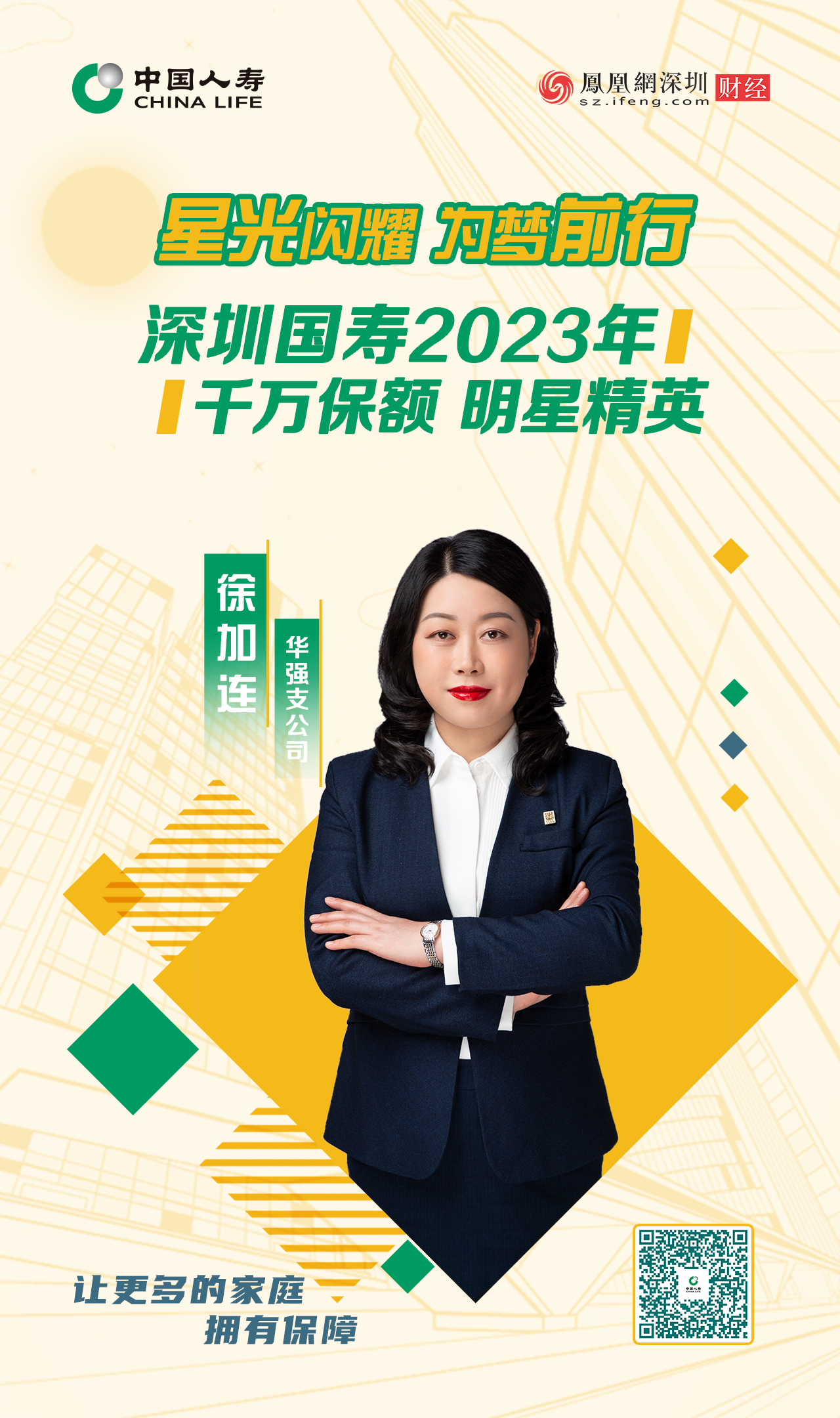 2009年3月入职至今,连续多年的百万精英。徐加连从业14年以来,累计服务5014位客户,送出5亿5800万保障。她始终以客户需求为先,凭借坚定与毅力为客户们提供庇护和安全感,通过用心的服务获得越来越多客户的认可。