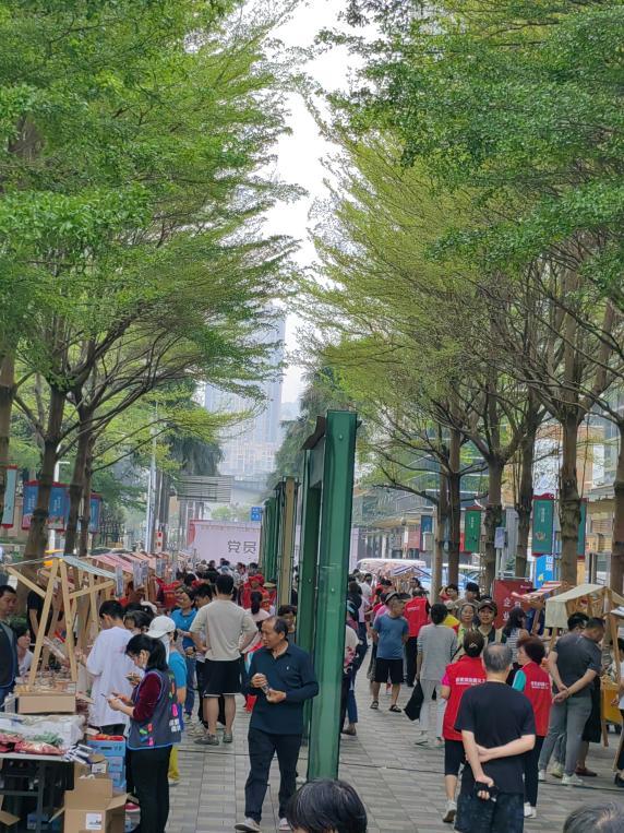 本次市集联合市市监局福田监管局香蜜湖所、福田区人民检察院、渣打银行等16家企事业单位开设了书记面对面、“百千万工程”宣传、助力“小个专”等21个摊位,而且专门邀请了元初食品、得粒烘焙坊、楼下美景等11家“小个专”参与,累计服务超800人次。