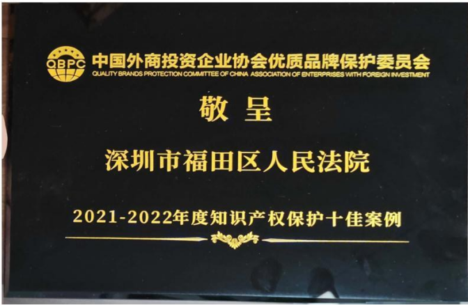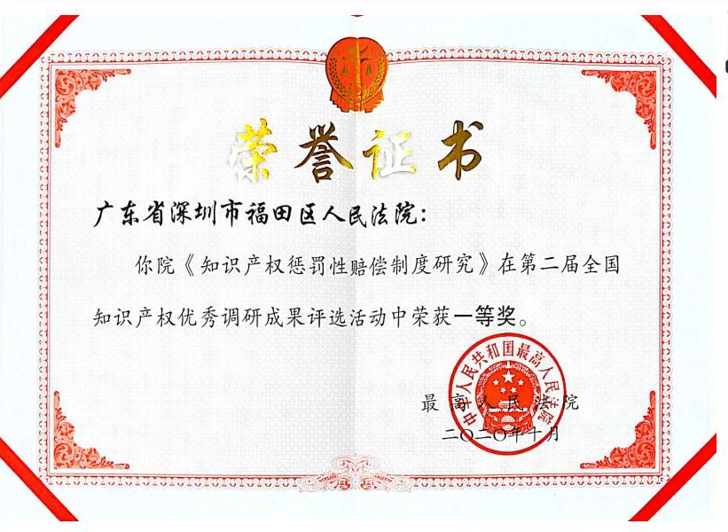 近日,最高人民法院对在知识产权审判工作中表现突出的集体和个人通报表彰,深圳市福田区人民法院知识产权审判庭荣获“人民法院知识产权审判工作先进集体”称号。