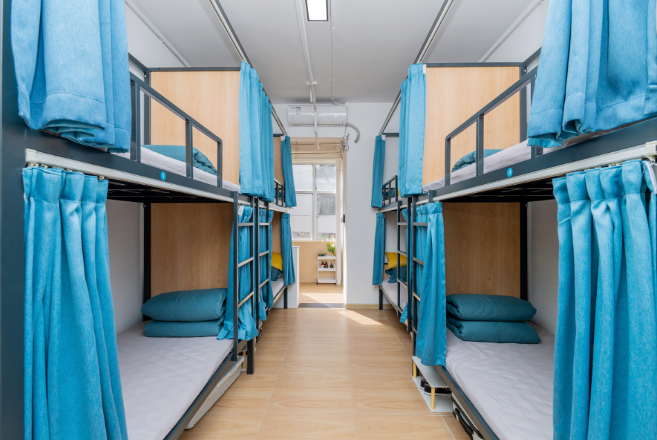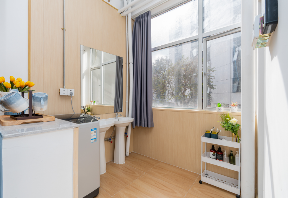 不仅如此,公寓免费为入住者提供床上7件套并每月换洗更换,确保入住者能够享受到高品质的居住体验。在配套设施方面,公寓充分考虑了入住者的生活需求,房间内床具选用加厚钢材,固定于墙面,确保安静无噪音,并为每张床都设置窗帘、床头灯、密码柜,充分保证私人空间。