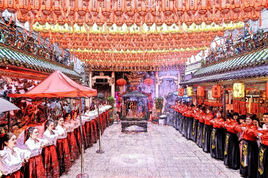 庙会也为本地居民提供了展示自己文化、传承习俗的舞台,展示着祖传的技艺和技能。这种文化的传承和展示不仅仅是对过去的回顾,更是对未来的承诺。因此,庙会不仅是一场简单的娱乐活动,更是一个融合了多种文化元素的文化盛宴。在这里,人们能够感受到当地独特的民俗风情,体验到不同文化之间的交流与包容。庙会所展现的文化多样性和包容性,使其成为地域联系和文化认同的重要平台,也为促进文化多样性和包容性发挥着重要作用。