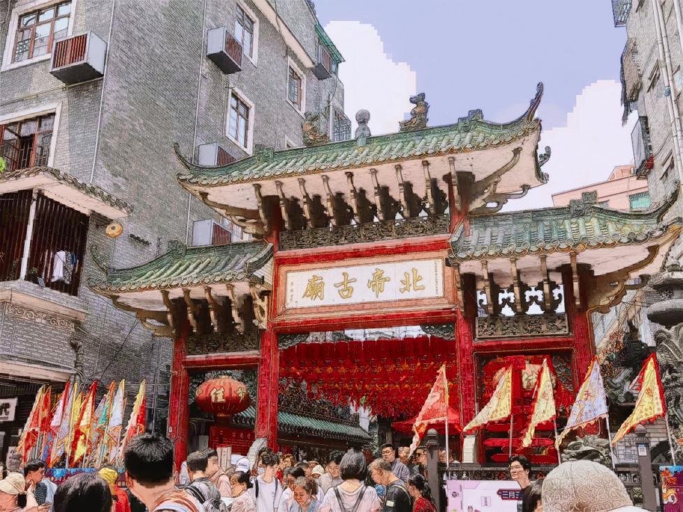 庙会背后的灵魂——西乡北帝古庙,始建于明朝中叶,距今已有近五百多年历史。每年三月三,庆祝北帝诞辰的庙会便在此举行,是岭南地区最为重要的文化盛事之一。古庙成为传统与现代交汇的舞台,锣鼓声、麒麟舞与东北秧歌舞、英歌舞等多元民俗文化便在此交织,展示了文化的多样性与活力。