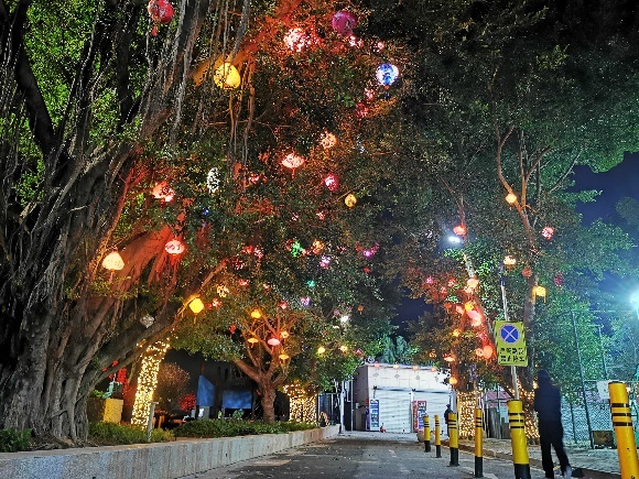 静看夜晚的街巷流光溢彩