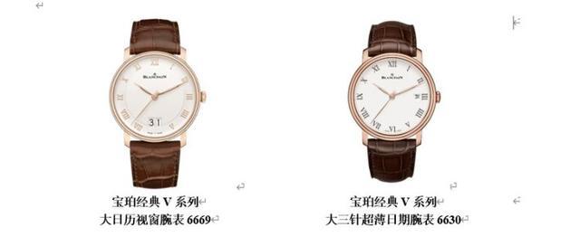 宝珀单历:宝珀贯彻简洁典雅的设计风格,又为每块作品赋予别出心裁的匠心巧思。以最基础的单历腕表为例,在大日历视窗腕表6669上,宝珀以完美的分寸感,将实用的日历显示功能,通过两个并列宽阔的视窗以大号数字显示出来,日期读数一目了然。