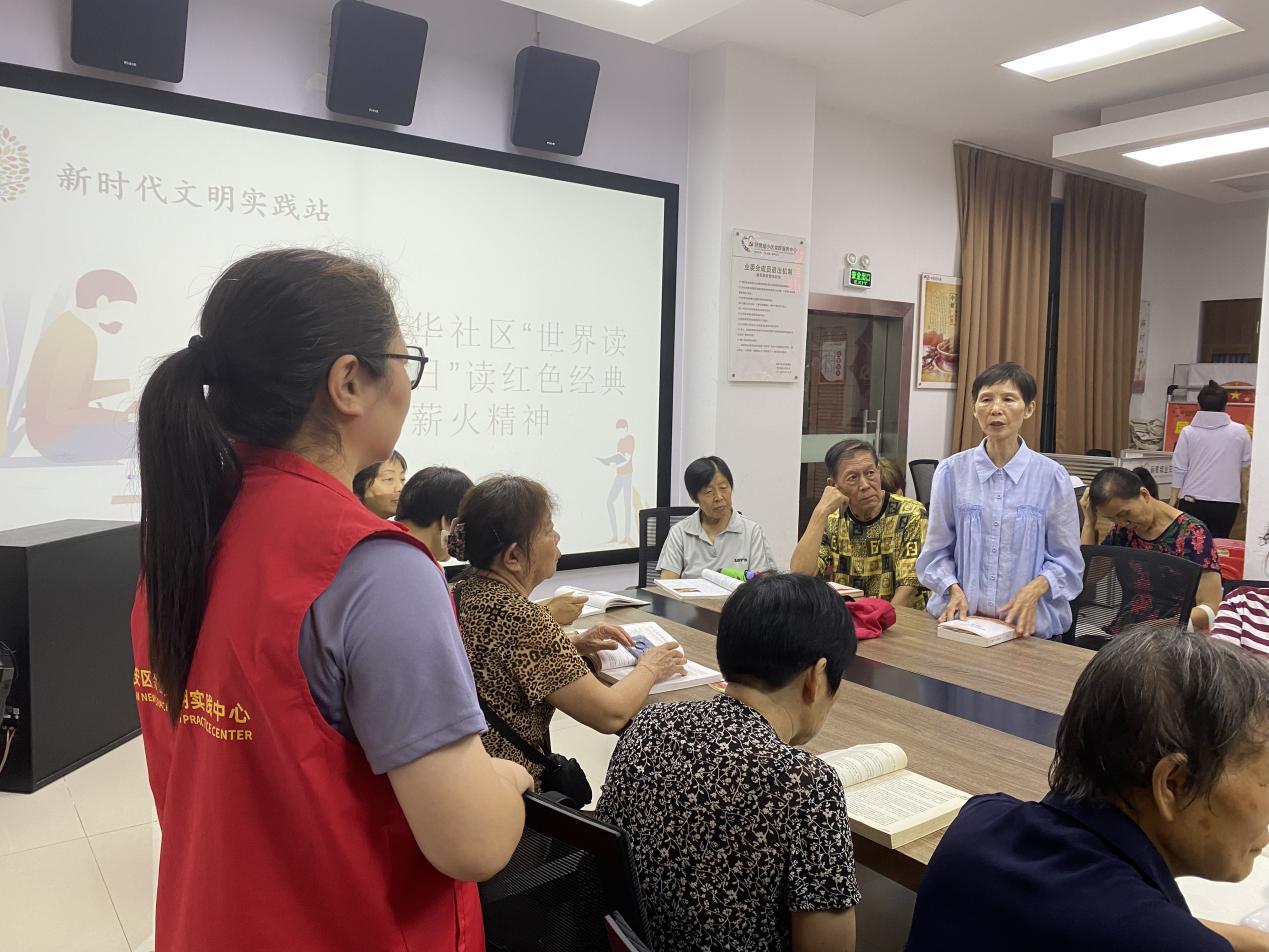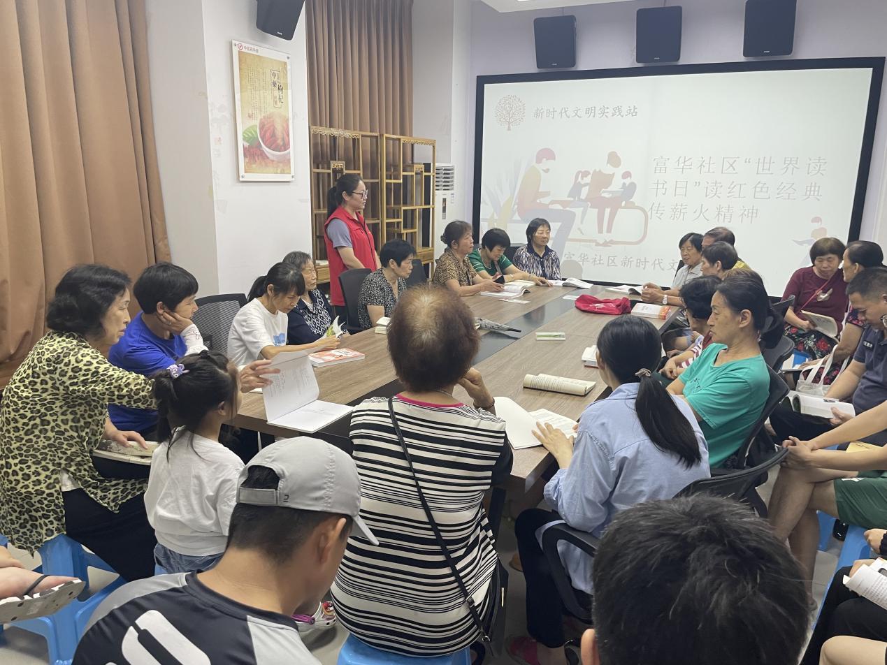 为引导辖区居民养成良好的阅读习惯,浓厚社区的文化氛围,4月23日上午,西乡街道富华社区新时代文明实践站以第29届世界读书日为契机,开展“读红色经典 传薪火精神”阅读分享会,聚集辖区25名老中青读者,分享阅读心得,共沐书香气息。
