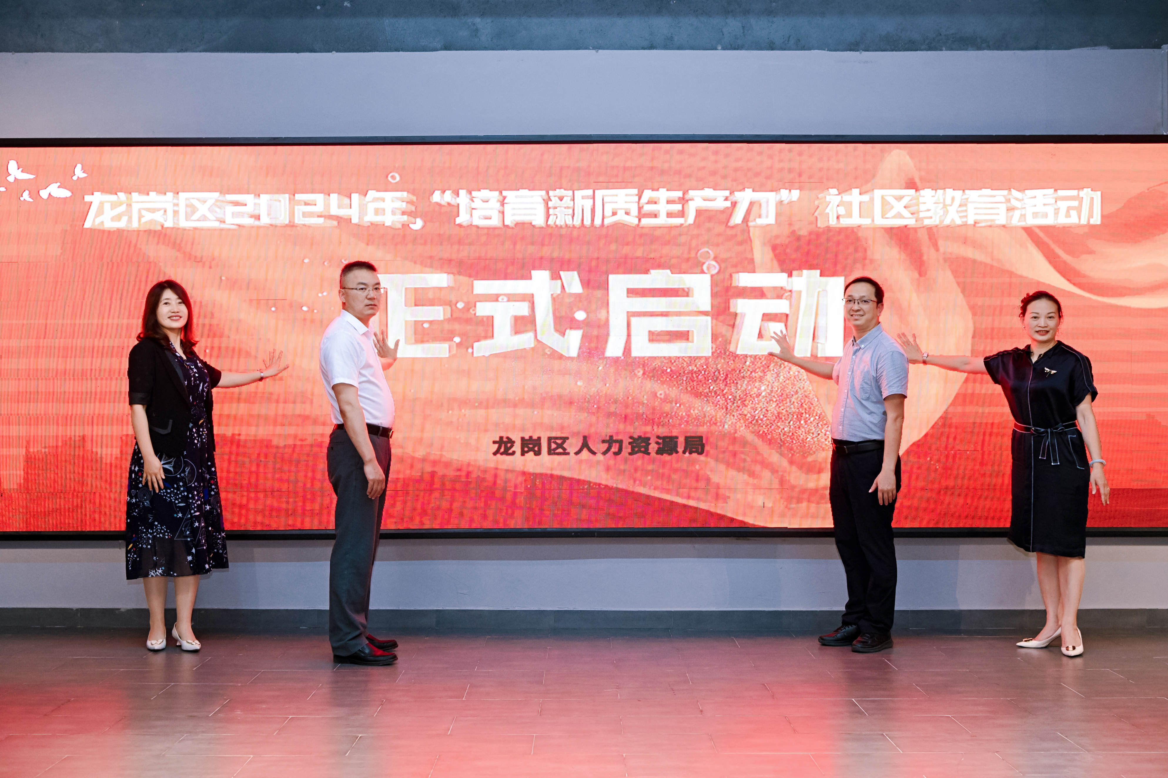 在启动仪式现场,区人力资源局党组成员、区人力资源服务中心主要负责人强调:“我们在这里庄重举办这样的一个仪式,目的就是为了落实国家、省、市高质量发展要求,利用社区教育这个重要手段,来为龙岗重点产业培养人才,提升市民科学素质,为巩固学习型社区、学习型街道工作成果及建设学习型城区打下坚实的基础。”