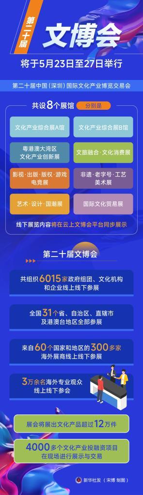 第二十届中国(深圳)国际文化产业博览交易会将于5月23日至27日举行。作为以新质生产力赋能文化产业繁荣发展的关键举措,本届文博会加快转型升级,积极引进国内外高端文化产业资源,着力提升国际化、市场化、专业化、数字化水平,力争办出新特色、新亮点、新成效。