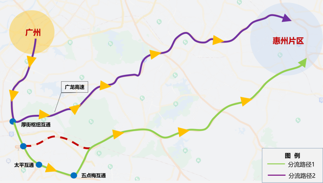 路线二:太平互通—京港澳高速—广龙高速—惠州