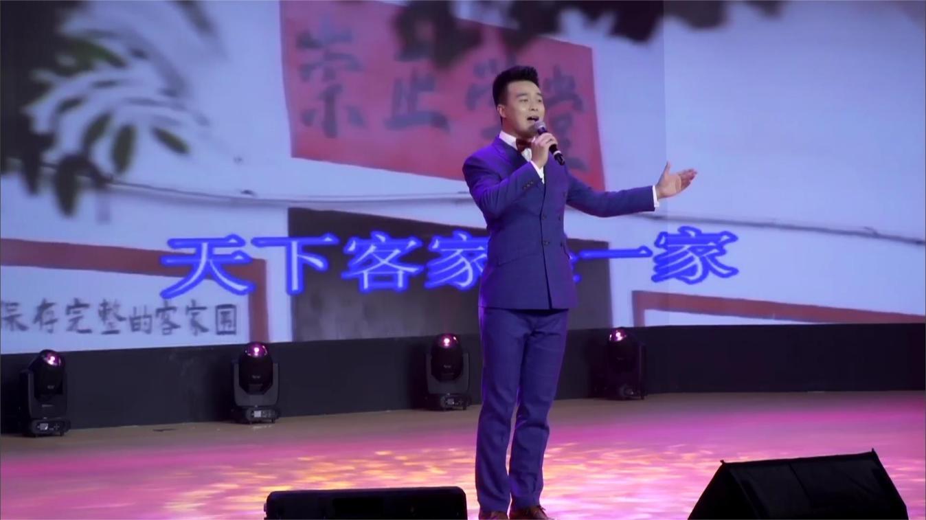 志强:客家人遍布全球,彼此之间都有着延续千年的共同文化和血缘联系,视彼此为家人,互相支持、关爱和帮助。歌词创作由赣南师范大学音乐学院李启福教授执笔,写出客家人的徒迁史、开拓史,描写客家人在徒迁中探索融合、奋进开拓的客家精神,无论走到天涯海角,大中华的客家之情永不变。为了表达这种深厚的情感和家族团结的感觉,我选择客家山歌风和中原民歌素材相结合,主题旋律采用简单的、容易记忆的旋律,以便更容易深入人心,间奏采用客家八音主奏乐器唢呐为特色乐器,发出高亢嘹亮,气势雄壮,大气磅礴的感人乐音,让音乐能够真正传达出“天下客家是一家”的情感。在全国实景山歌赛决赛中,国家一级演员曹艳常演唱《天下客家是一家》荡气回肠,唱出了天下客家人的心声,荣膺第四届阳台山全国实景山歌大赛“客家山歌王”称号。