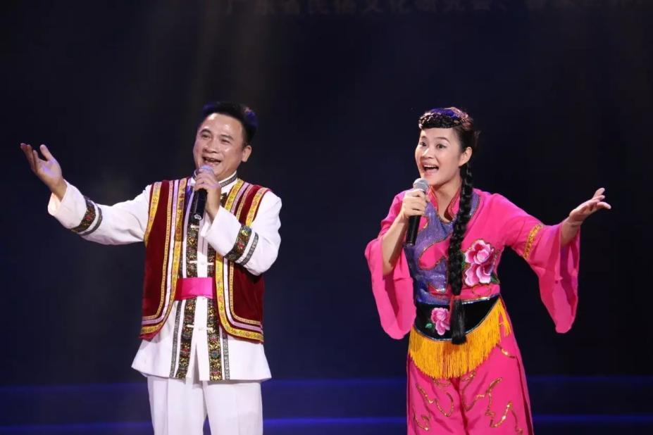 《武麒麟》、《天下客家是一家》演唱者:曹艳常(右、国家一级演员、荣获第四届全国实景山歌赛“山歌王”称号)
