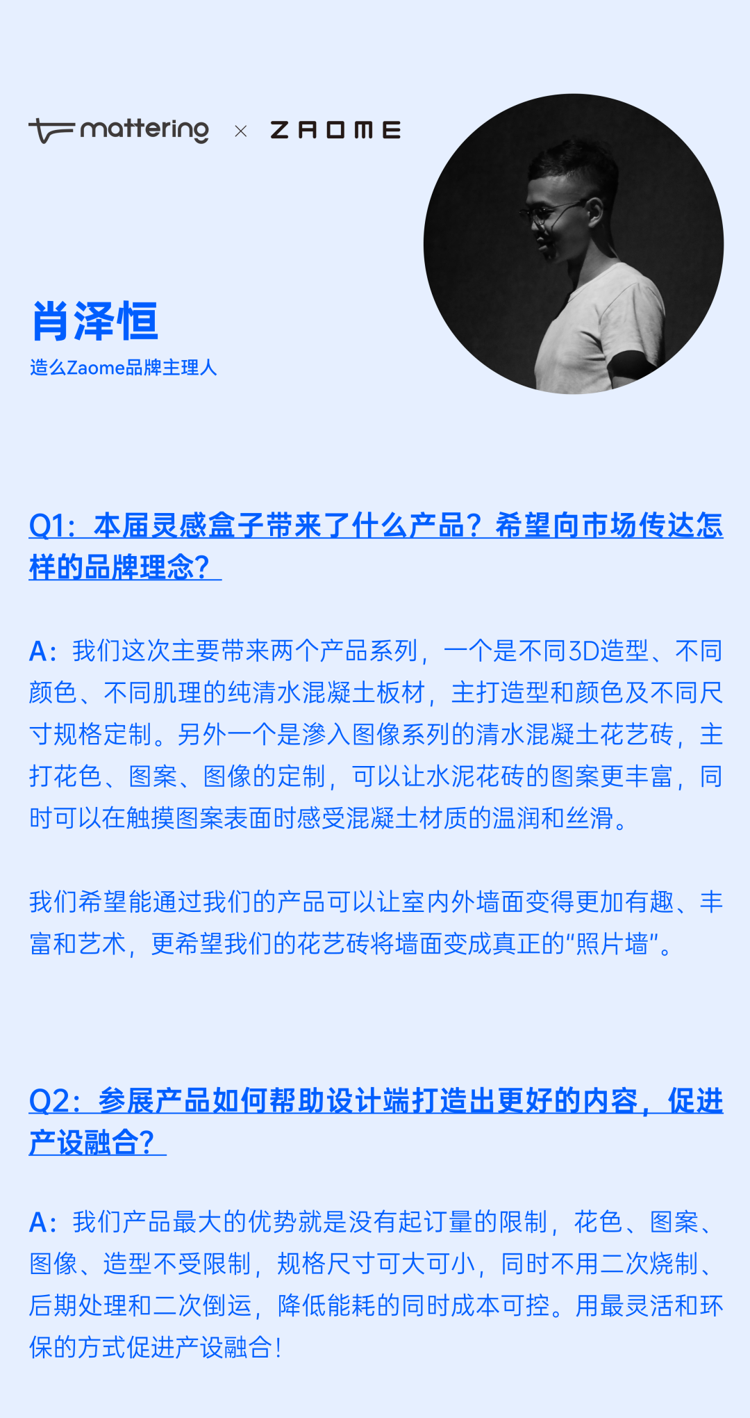 以“发现带来灵感的产品、找到实现灵感的解决方案,分享呈现灵感的设计案例”为核心,多层次演绎不同材料的创新价值,为产品与设计搭建发声、交流、合作的桥梁,实现让产品更有价值、让设计更专业的使命。