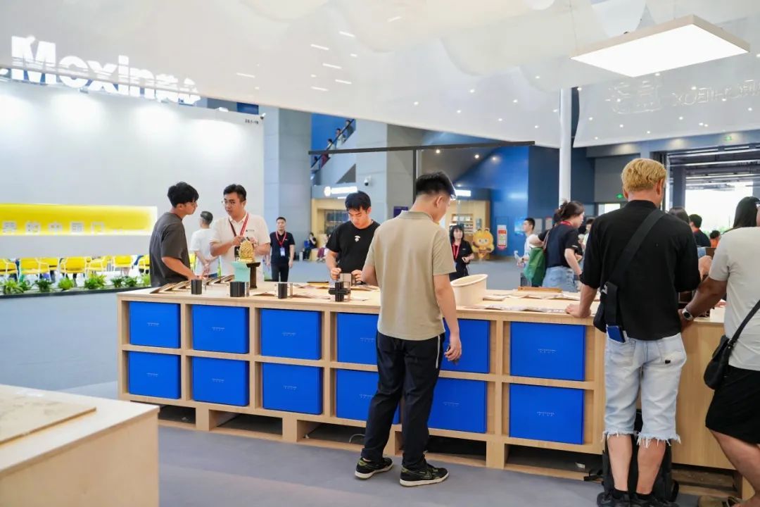 配合时下年轻人热衷的生活方式,增设了打卡、畅饮区域。原创设计家居品牌「间则jianze」带来了由多个彩色猫柜堆叠而成的小型艺术装置,呈现奇趣生活场景。世界高端净水品牌「MULTIPURE美而浦」在咖啡区为来往观众提供了“鲜榨”矿泉水的新奇咖啡体验,让观众直观感受到“水好、咖啡好”的理念。