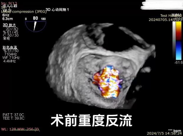 患者是一位70岁老爷爷,去年因突发心梗在当地医院抢救,医生为其植入了冠脉支架。然而,手术后老爷爷的胸闷气促症状反复发作且有加重现象,超声心动图提示老爷爷的心脏因为心梗导致心脏功能严重受损,EF值只有34%,出现二尖瓣重度反流,近日来中国医学科学院阜外医院深圳医院就诊。二尖瓣反流的手术治疗有两种方式,一种是外科开胸手术进行瓣膜修复或置换,另一种是通过导管进入心脏放置瓣膜夹进行修复。老爷爷的心脏已经不眠不休工作了70多年,而且还患有心梗、高血压等基础性疾病,外科手术风险评分(STS评分)高达9.49分,提示外科开胸手术风险极高。经过充分的术前评估和多学科讨论,与老爷爷及其家属充分沟通后,阜外团队计划为老爷爷实施不用开刀的经导管二尖瓣缘对缘修复术。