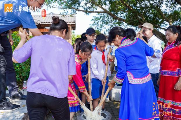 广西百色特有的“壮族”传统文化和习俗传承着民族的非遗魅力,学生们与当地壮族人民一起体验多彩的民族文化,通过跳竹竿舞、打糍粑,学习传统非遗手工艺“麽乜”,感受浓郁的地方风情。