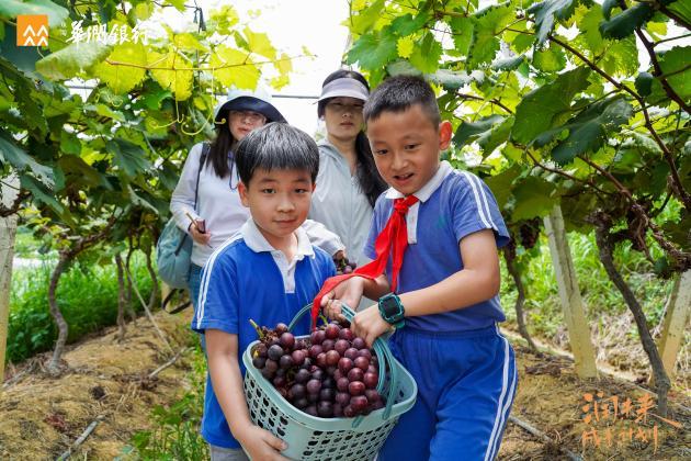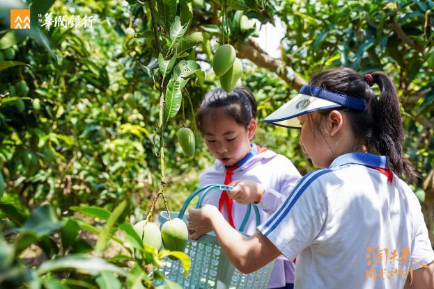 在广西百色丰饶的土地上,学生们化身小农夫,帮助果农采摘新鲜葡萄和芒果,体验了农耕文化带来的丰收与喜悦。在与果农的交谈中,学生们在研学中学习了农业种植知识及华润希望小镇产业帮扶概念,加深了对公益助农的认识与理解。