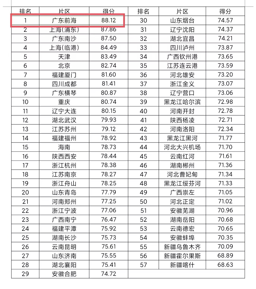 7月16日,中山大学自贸区综合研究院发布2023—2024年度中国自由贸易试验区制度创新指数,前海位列第一。此外,在制度创新指数的分项排名中,前海均排在前五名。