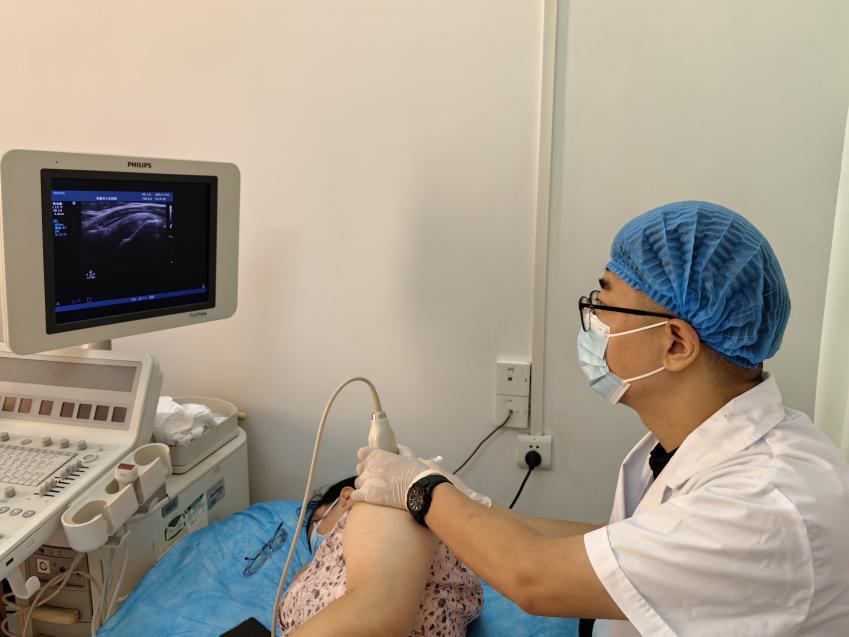 不久前,她得知对口支援的董军涛博士在资源县人民医院康复科坐诊,立即找到了他,经评估病情后,董博士建议可考虑行超声引导下冈上肌撕裂处高浓度葡萄糖注射治疗。在详细了解该疗法后,钟大姐同意了董博士的治疗方案。同时,董博士还教了他一些居家康复锻炼方法。