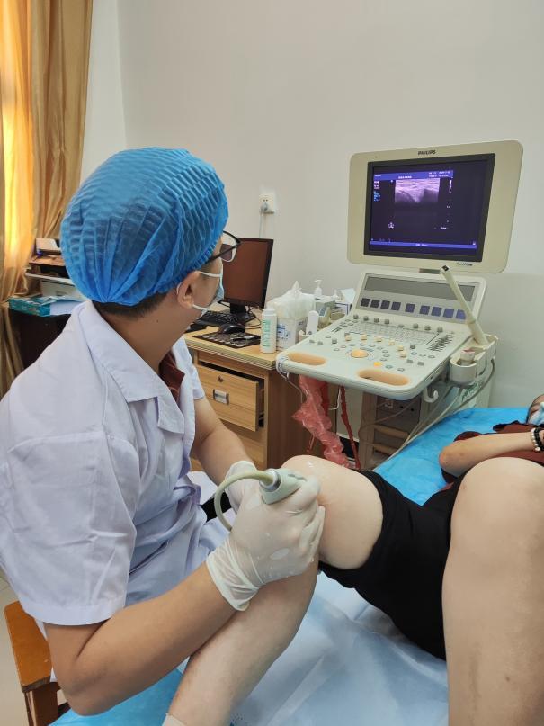 董军涛为膝关节痛患者进行超声引导下注射治疗