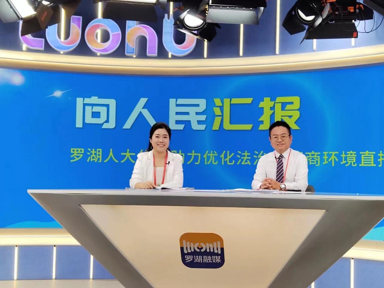 当天,位于罗湖区法院诉讼服务中心的市人大代表闵齐双与罗湖法院党组成员、副院长张新文,通过镜头带领市民了解诉讼服务。