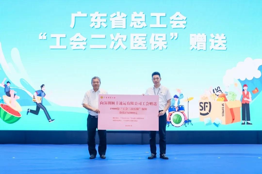活动现场,广东省职工保障互助会向顺丰工会赠送了 “工会二次医保”。据悉,“工会二次医保”即“广东省在职职工住院医疗综合互助保障计划”,是职工普遍参加的一个项目,其最大特色是职工患病住院时,除享受医保报销待遇外,医保统筹范围内个人自付部分还可以再报销两次,第一次报80%,第二次报70%,有利于缓解职工因病住院治疗导致医疗费用支出增加和收入减少带来的经济负担。