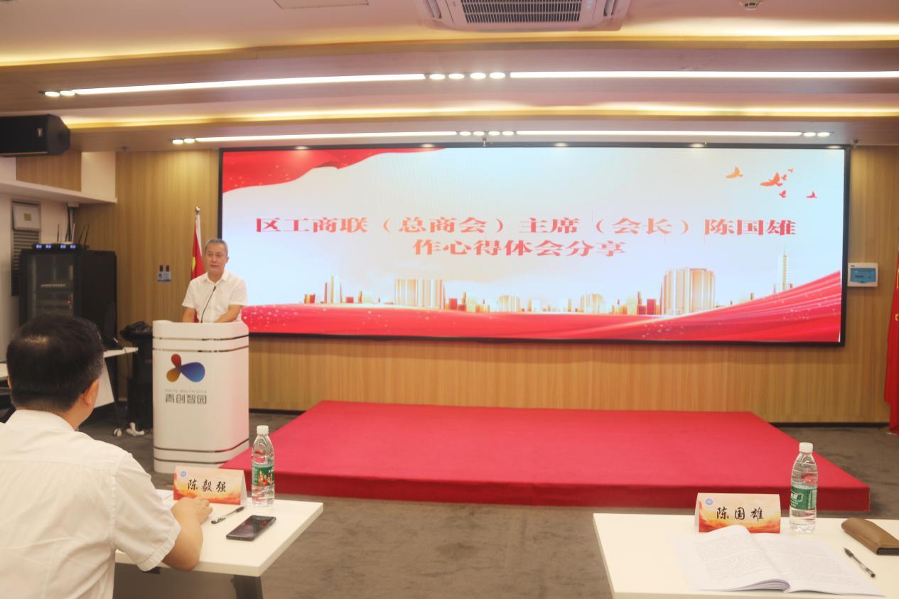 区工商联(总商会)主席(会长)陈国雄,区委统战部副部长、区工商联(总商会)常务副主席(常务副会长)、区工商联(总商会)党委书记陈毅强,来自辖区各行各业的民营企业家代表、区工商联(总商会)党委党员代表共50余人参加活动,学深悟透党的二十届三中全会精神,争做新时代接班人。