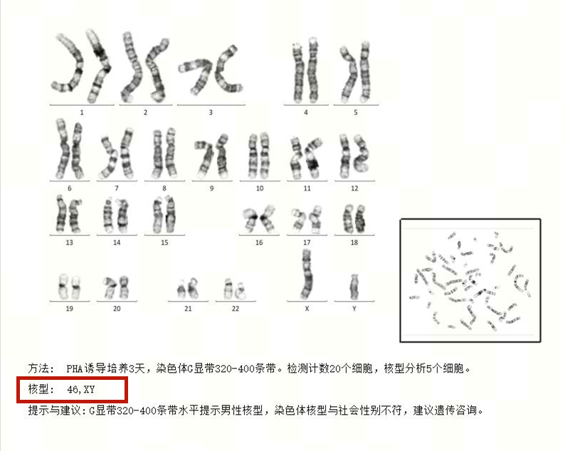 “46,XY”是一个正常男性的染色体啊,而正常女性染色体为“46,XX”才对啊?难道是实验室结果错了?