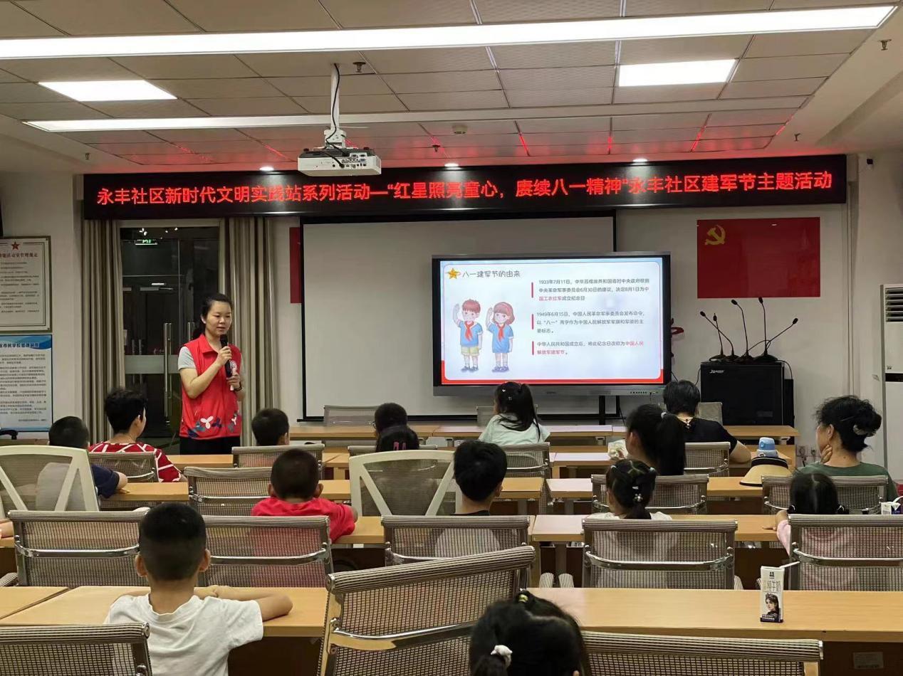 为帮助辖区青少年进一步了解党和国家的历史,厚植爱国情怀,砥砺强国之志。2024年8月1日上午,永丰社区团委、少工委联合开展了“红星照亮童心,赓续八一精神”建军节主题活动。本次活动吸引了25名青少年积极参与。