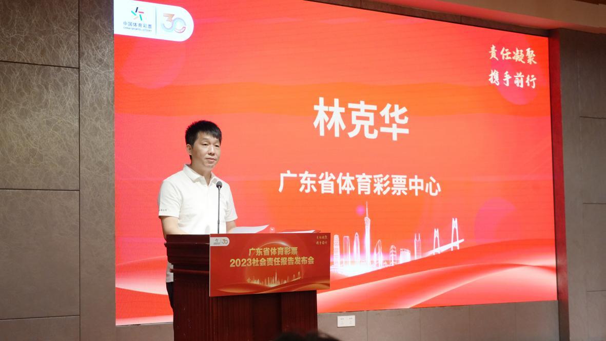广东省体育彩票中心主任林克华对广东体彩2023年责任彩票建设成果进行介绍。一年来,全省体彩系统坚持党建引领,紧扣高质量发展首要任务,围绕“建设负责任、可信赖、高质量发展的国家公益彩票”的总体目标,全面履行社会责任,主动担当作为,努力开创广东体育彩票发展新局面,让体育彩票融入广大人民群众的体育文化生活,使体育彩票发展成果惠及广大人民群众。2023年,全省实体店规模数量达1.5万余个,提供就业岗位3万多个,体育彩票在稳增长、促就业、惠民生等方面作出了新的贡献;全年销售体育彩票389.06亿元,筹集公益金91.56亿元,位居全国前列。