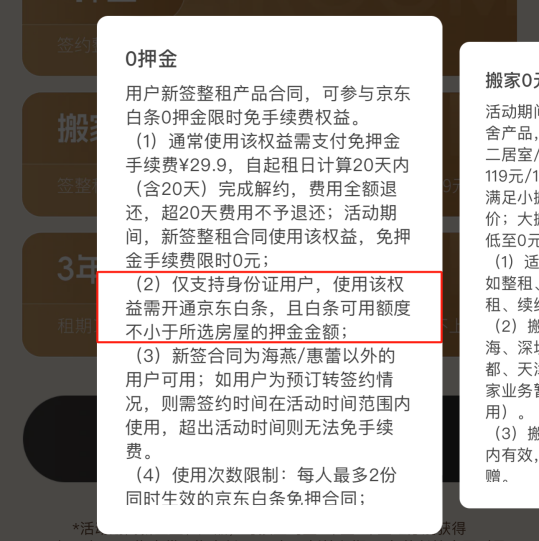 近日,“提灯定损”频发。随后有网友爆料已有平台上线租房的信用免押服务。从页面介绍来看,该活动是京东金融针对于在自如进行合租/整租的租客提供的服务,需要开通京东白条,在白条可用额度大于押金时即可享受这项服务。