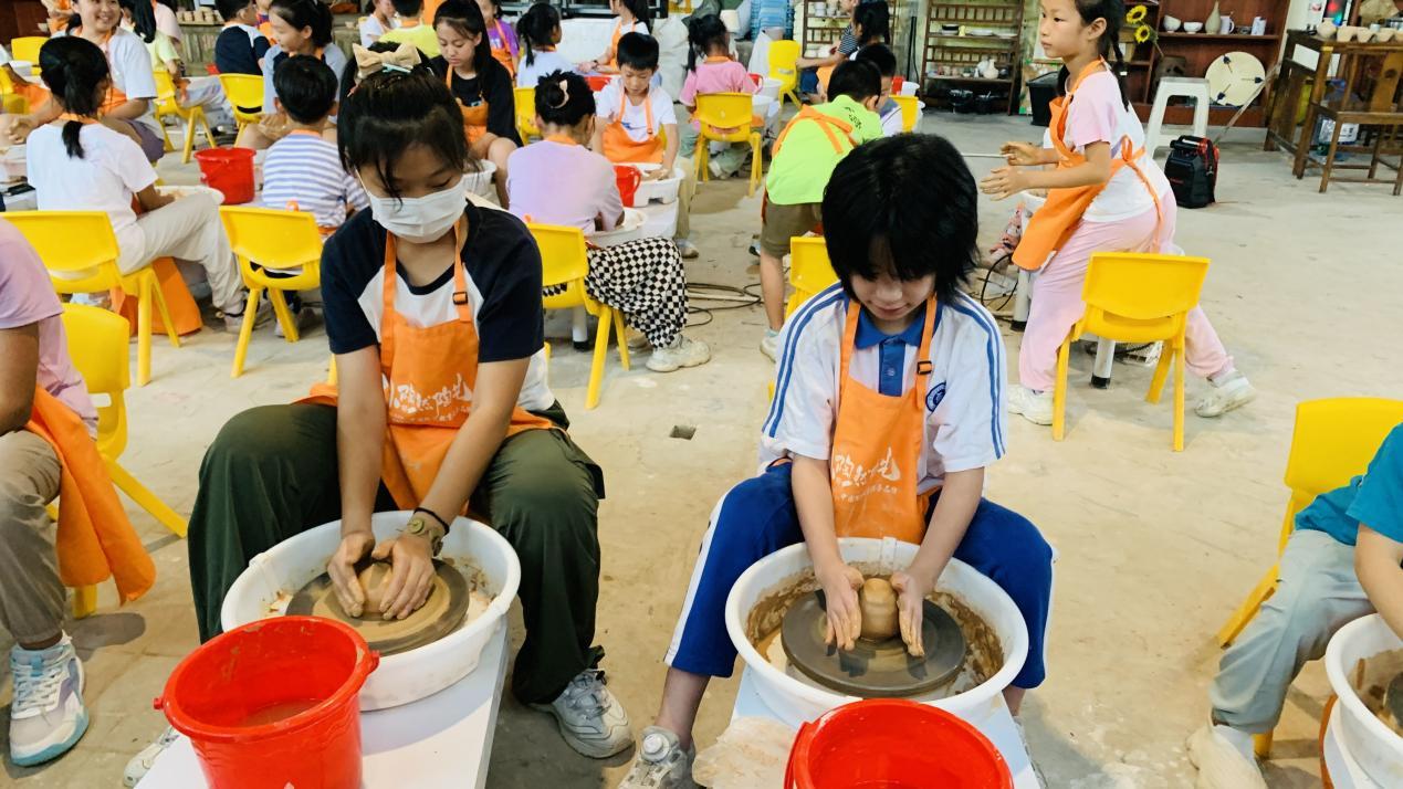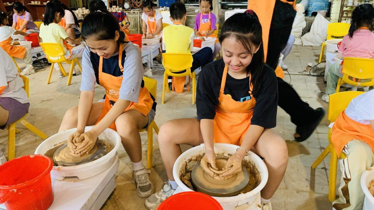 此外,陶艺体验也让孩子们兴奋不已。陶土是大自然质朴的馈赠,等待孩子们用小手去唤醒它。他们坐在旋转的拉坯机旁,指尖轻触湿润的陶土,随着陶轮的旋转,一件件充满童趣与创意的陶艺作品逐渐成型。这个过程中,孩子们不仅感受到了陶艺的魅力,让孩子们全身心投入到陶艺体验中,更是收获一份属于陶艺的热爱。