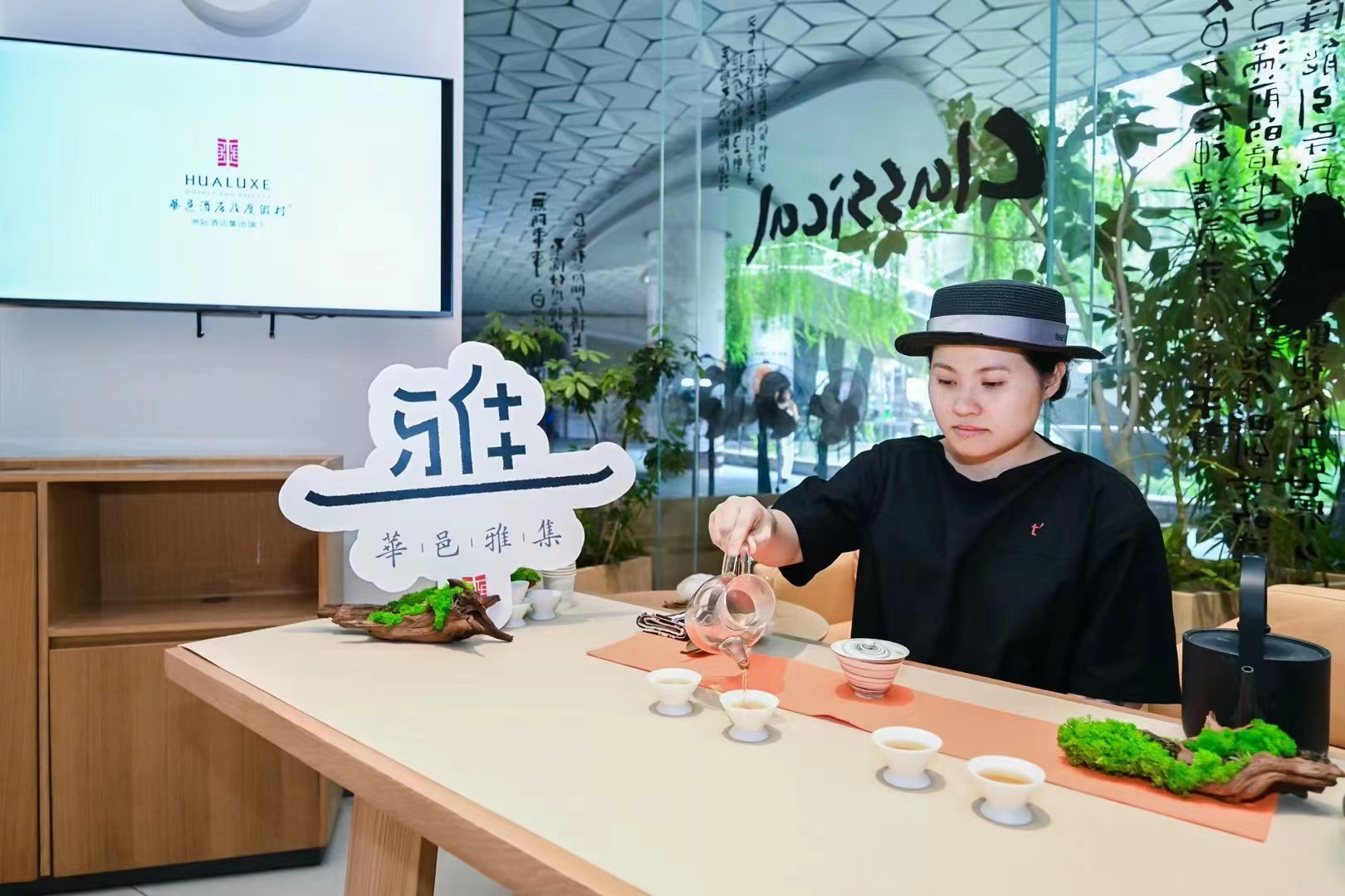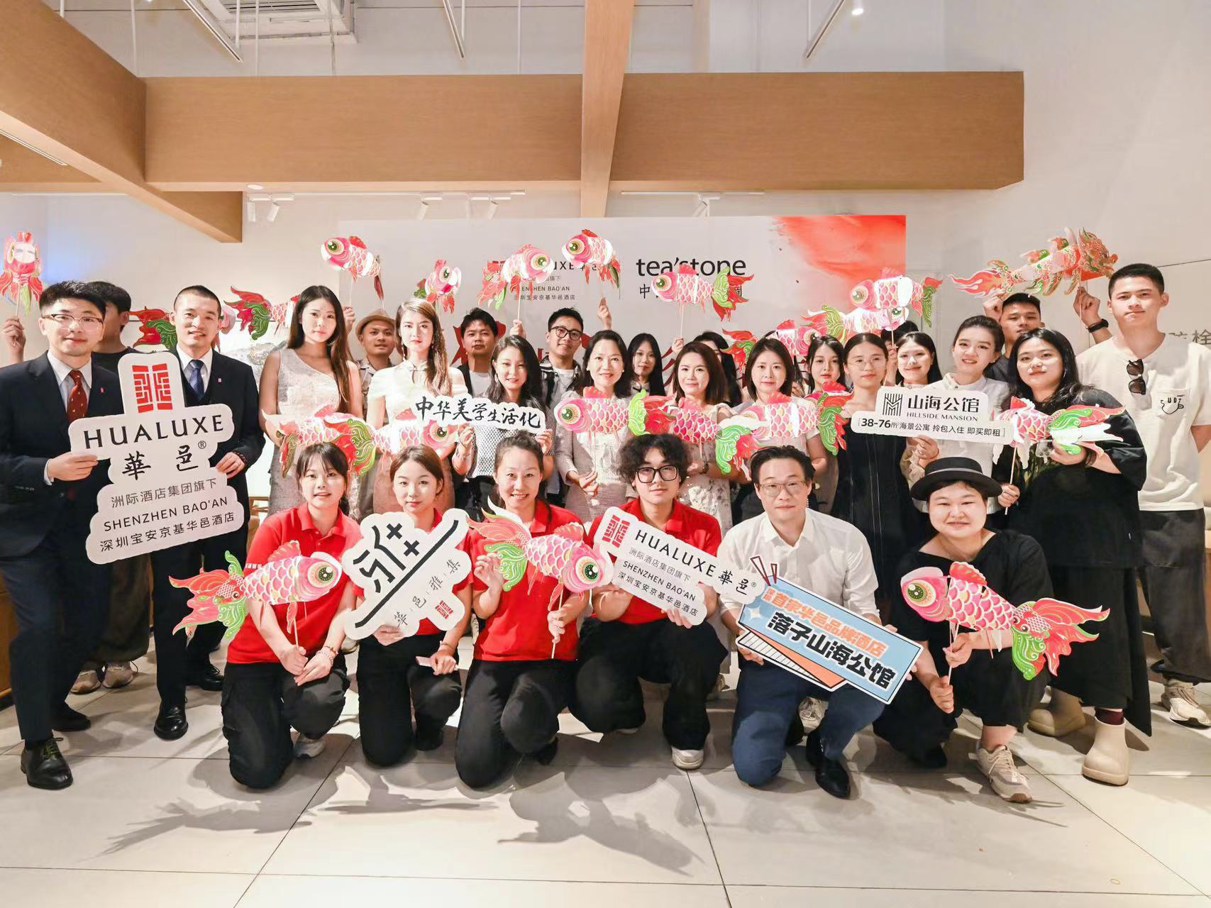 活动当天,tea'stone前海壹方城门店被精心布置成一幅融合传统与现代美学的画卷,华邑八大雅事纱幔轻垂,营造出一种大气而典雅的新中式艺术氛围。嘉宾在背景板前签到并与精美鱼灯合照,留下难忘瞬间。同时,酒店管理层亲自迎接每一位嘉宾,展现了酒店的待客之道。
