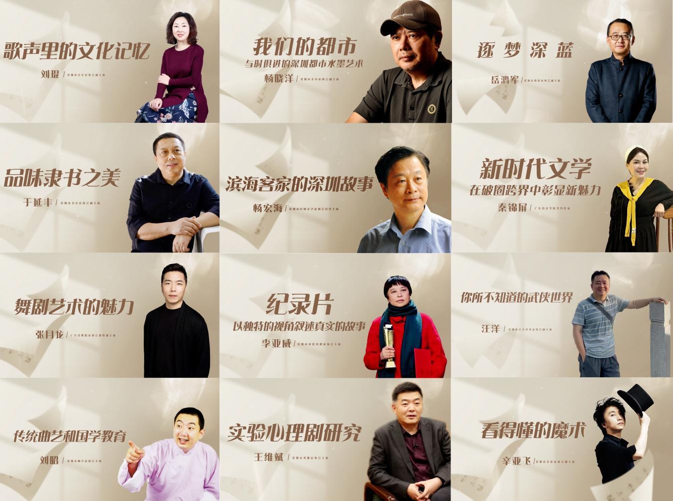据悉,2024年文艺大讲堂共邀请了来自深圳市12个文艺家协会的12位文艺名家,精心拍摄制作了12集线上课程。课程内容涵盖舞蹈、摄影、书法、绘画、魔术、戏剧、文艺评论、文学、音乐、曲艺、影视等艺术领域,将于9月在深圳市文联、市文艺家协会服务中心的微信公众号及其他新媒体平台陆续播出。