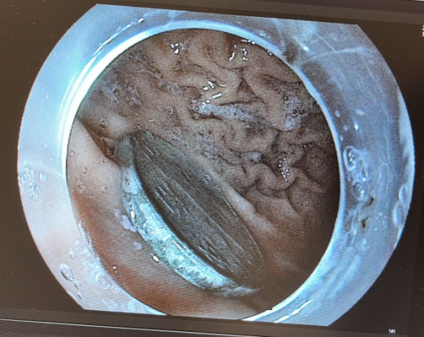 这次腹部立位片检查的结果显示,硬币在孩子的胃里一动没动。接诊的儿科副主任医师王艳丽担心胃酸的腐蚀会对胃粘膜造成刺激,金属异物在胃里呆的时间过长会导致胃粘膜水肿,有些异物甚至会引起胃部糜烂或者溃疡,于是建议让孩子在全麻下进行胃镜下异物取出术。