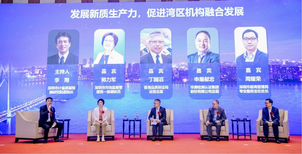 由深圳市计量质量检测研究院原院长李翔主持的“发展新质生产力,促进湾区机构融合发展”圆桌会议,深圳市市场监督管理局一级调研员郭力军,香港品质保证局运营总监丁国滔、华测检测认证集团股份有限公司总裁申屠献忠、深圳市前海管理局专业服务业处处长周耀荣四位嘉宾,分别从融合化、高端化、数字化、绿色化、国际化、特色化方向,共同探讨大湾区质检技术服务机构在新质生产力发展形式下面临的机遇和挑战,畅想湾区机构合作未来。