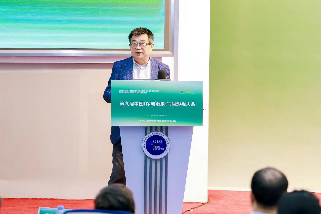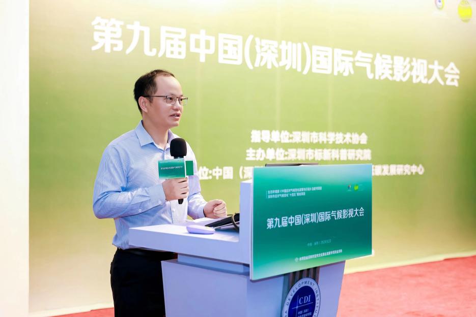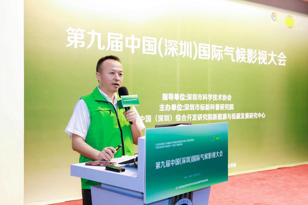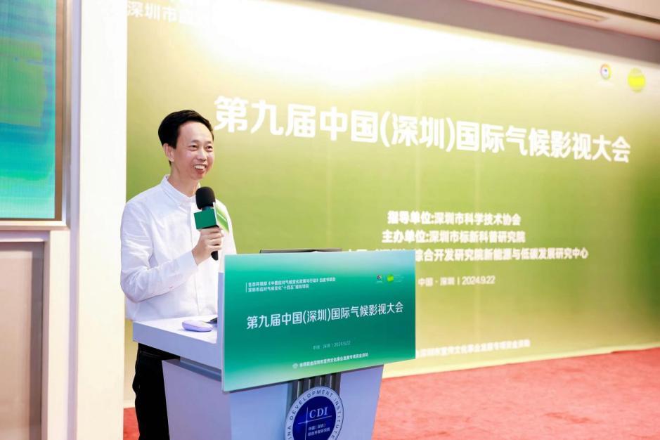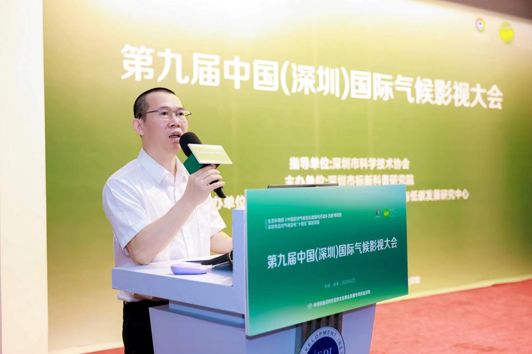 中国(深圳)综合开发研究院新能源与低碳发展研究中心主任刘宇代表协办单位发言。刘宇主任表示,应对气候变化,首先需要扩大对气候变化的认知。从认知到行动,应对气候变化需要发挥各方力量,中国(深圳)综合开发研究院也通过公共社会活动,提高公众的参与度和行动力。希望能通过大会充分发挥研究院的智库作用,借助影视媒介和专业论坛的力量,推动应对气候变化刻不容缓的行动。