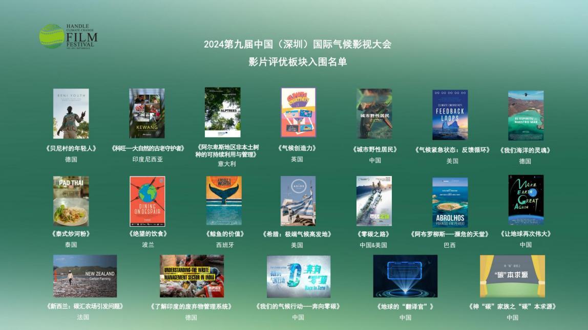 大会揭晓了本届气候影视评优入围影片名单,中国科教影视协会首席专家、原国家广电总局电影局局长刘建中作为大会评委会主席,揭晓了来自中国、美国、英国、德国、法国、意大利、西班牙、波兰、泰国、印度尼西亚、巴西的11个国家的19部入围影片。