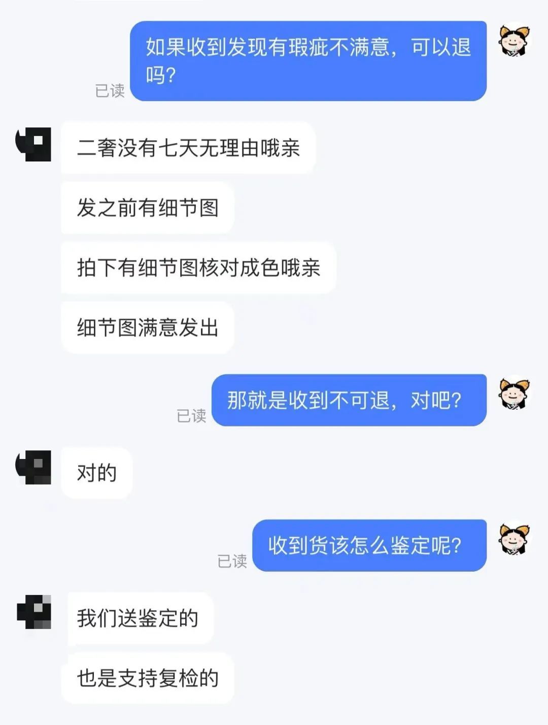 国是君通过某直播电商平台联系到一家卖二手奢侈品的店铺。该商家表示,二奢商品由第三方鉴定机构鉴定,买家根据细节图核对成色,收到货后不支持七天无理由退货。