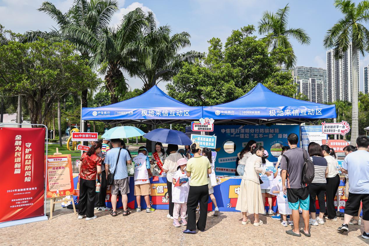 结合2024年“金融教育宣传月”主题,在金融消保展位前,中信银行深圳分行还以金融消保知识互动问答等方式,为市民带来趣味金融学习体验,帮助市民正确理解认识金融风险,进一步提升风险防范意识和能力。该行还同时开展了反诈宣传活动,“反诈宣讲小课堂”吸引了不少亲子家庭的注意力。工作人员将寓教于乐的消保拼图游戏与涵盖金融消费者权益保护等内容的金融知识相结合,全方位、多角度地普及反诈等金融知识,在轻松愉悦的氛围中将金融风险防范意识传递给广大市民。