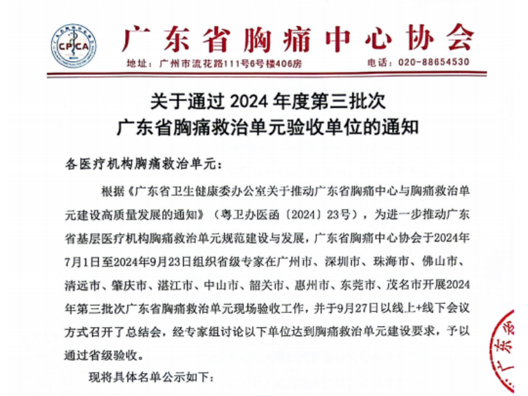 9月29日,深圳市中西医结合医院下辖18家社康正式升格为广东省胸痛救治单元,意味着该医院与下辖18家社康直接打通了胸痛救治体系的“起跑第一公里”绿色通道,使胸痛患者在辖区社康就能得到第一时间救治。