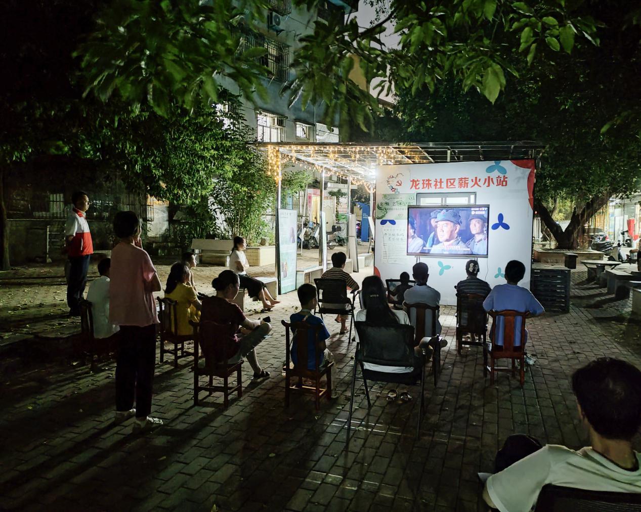 近日,龙珠社区联合砚墨书社开展了为期7天的“薪火放映厅——红色影片展映”活动,将荧幕搬到小区广场,把优秀影片送到群众身边,让城市的夜晚不再单调,吸引了大批居民观赏。