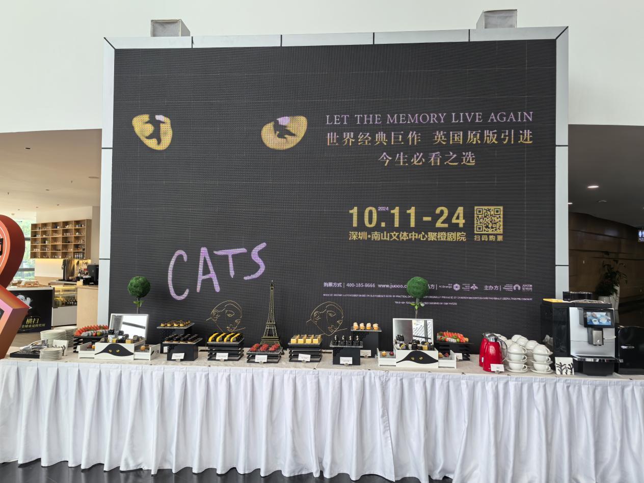 深圳作为本次中国巡演的首站,将于10月11日至24日在南山文体中心聚橙剧院连演16场次,与《猫》再续前缘。届时深圳观众将欣赏到舞美制作全面升级的世界级音乐剧现场。与此同时,感谢深圳中州万豪国际酒店对本次媒体见面会的倾情支持,根据原版音乐剧《猫》为创作灵感,匠心独运专程创作《猫》主题茶歇餐点,舌尖美味与现场热情氛围交织,受到领导嘉宾、剧组代表成员及到场媒体的一致好评。猫之艺章开启,全城精彩联动,为期一个月的艺术盛宴将于深圳城市的各个角落与深圳观众见面。
