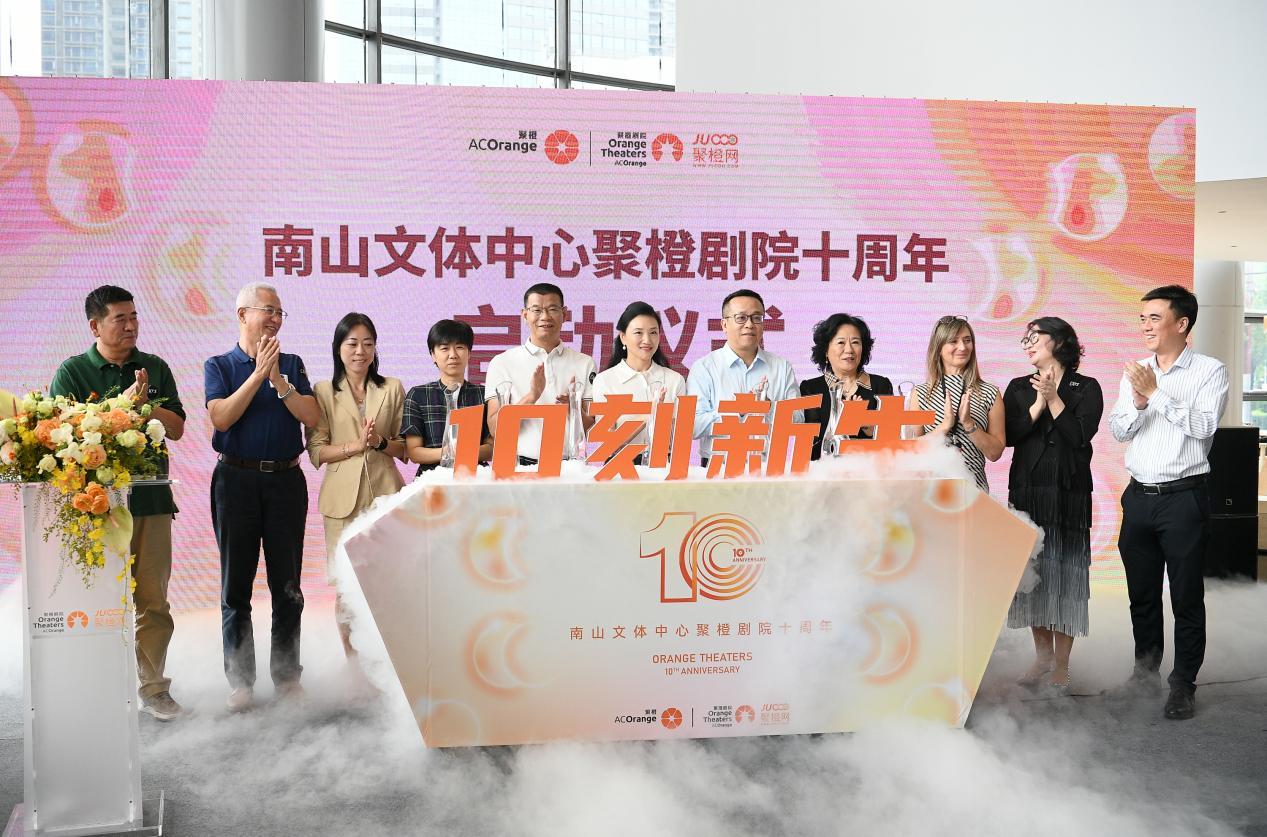 十年成长离不开社会各界的支持,在十周年的特别时刻,到场领导嘉宾共同启动装置,以期在未来相互携手,开启南山文体中心聚橙剧院未来更丰硕的成果。