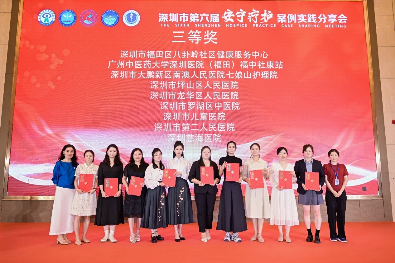 来自医疗、护理、社工等不同学科背景的7位安宁疗护领域专家,及25个参赛队伍的领队担任现场评委团,并按照市属医院、区属医院、社康居家三个板块现场评选出一二三等奖及优秀奖。经公证人员公证后,为获奖团队现场颁奖。深圳市龙岗区第七人民医院(简竹护理院)《生命的微光 温暖前行》,深圳市福田区第二人民医院《两个人,一个人》,以及深圳市人民医院《戎马半生,不负芳华》三个案例脱颖而出,荣获一等奖。