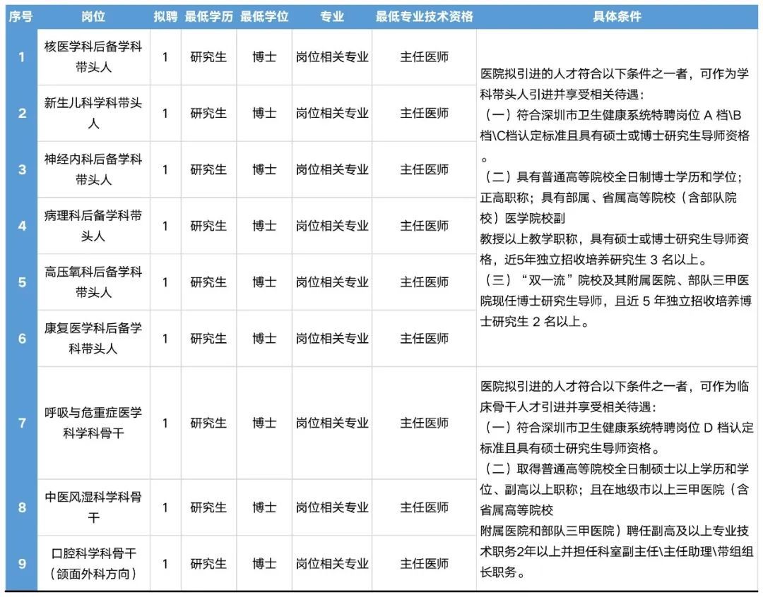 医院拟引进的学科带头人和临床骨干人才应同时符合以下基本任职条件: