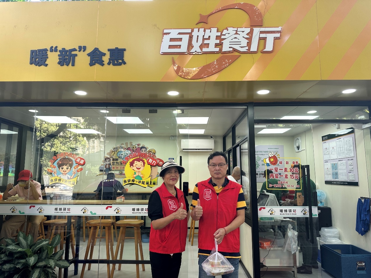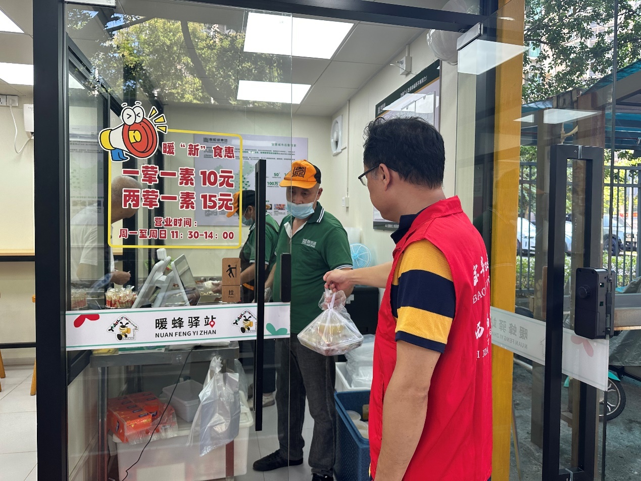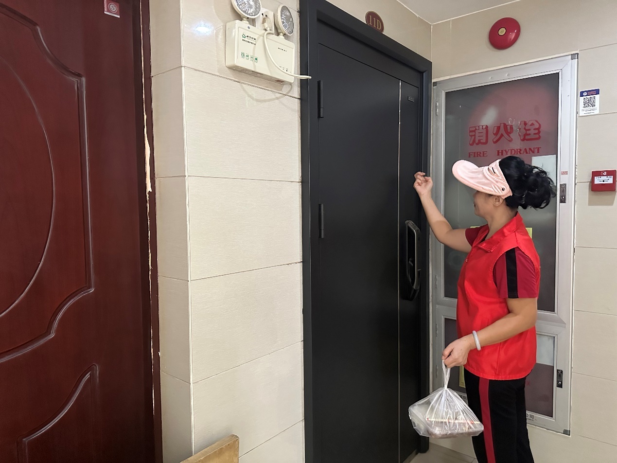 在了解到阿姨的情况后,福中福社区“爱心积分银行”牵头组织热心居民成立一支送餐志愿服务队,以邻里之情为纽带,就近为有助餐需求的居民提供送餐上门服务。每天中午,志愿者从“暖新实惠”惠民餐厅取餐打包,按时将热腾腾、营养健康的餐食送到阿姨手中。