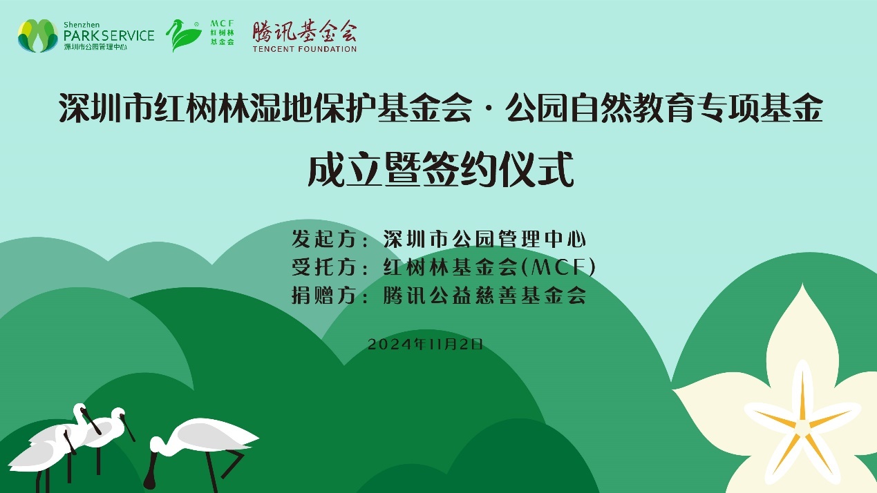为广泛动员社会力量,促进深圳市公园生态环境保护和自然教育事业的蓬勃发展,作为公园自然教育满天星计划的重要内容,深圳市公园管理中心与红树林基金会(MCF)合作,正式发起成立【深圳市红树林湿地保护基金会·公园自然教育专项基金】,整合社会各界力量,支持公园自然教育“满天星”计划、公园生物多样性保护及公众参与、公园大型文化品牌活动打造、共建花园建设、公园内生态提升和自然教育发展等工作,推动深圳市公园生态保护和自然教育事业发展,助力深圳自然教育之城建设。