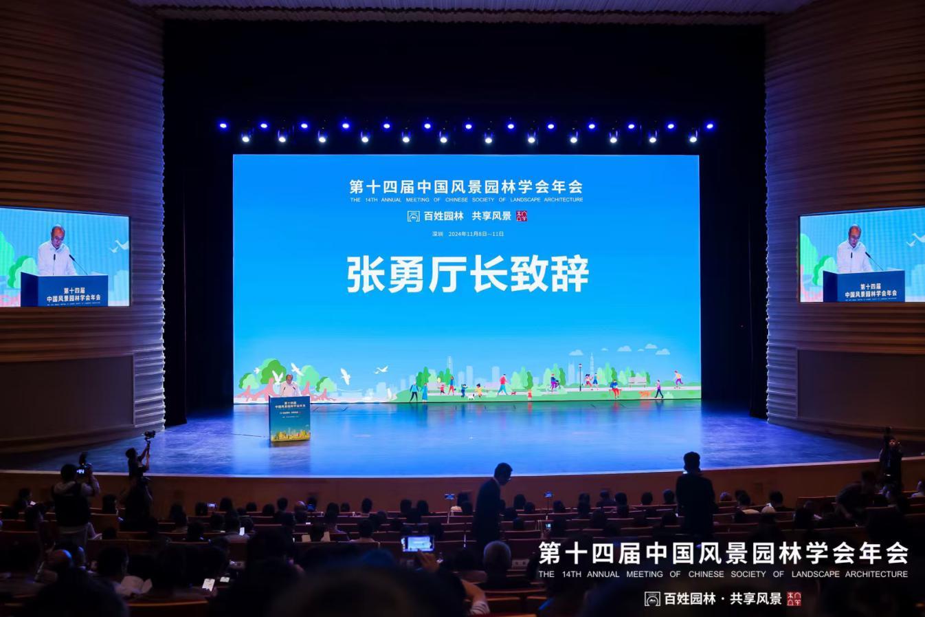 11月9日上午,第十四届中国风景园林学会年会在深圳光明开幕,本届年会首次在华南地区举办,全国首创风景园林年会+展会共办,吸引风景园林及相关行业的高校、科研院所、企业等领域1500余人参会。中国科学技术协会书记处书记王进展,住房和城乡建设部原总工程师、中国风景园林学会理事长李如生,广东省住房和城乡建设厅厅长张勇,住房和城乡建设部城建司副司长王凯峰,深圳市政府副秘书长产耀东,深圳市城市管理和综合执法局局长张国宏,光明区委书记蔡颖,光明区委副书记、区长邱浩航等领导嘉宾出席开幕式。