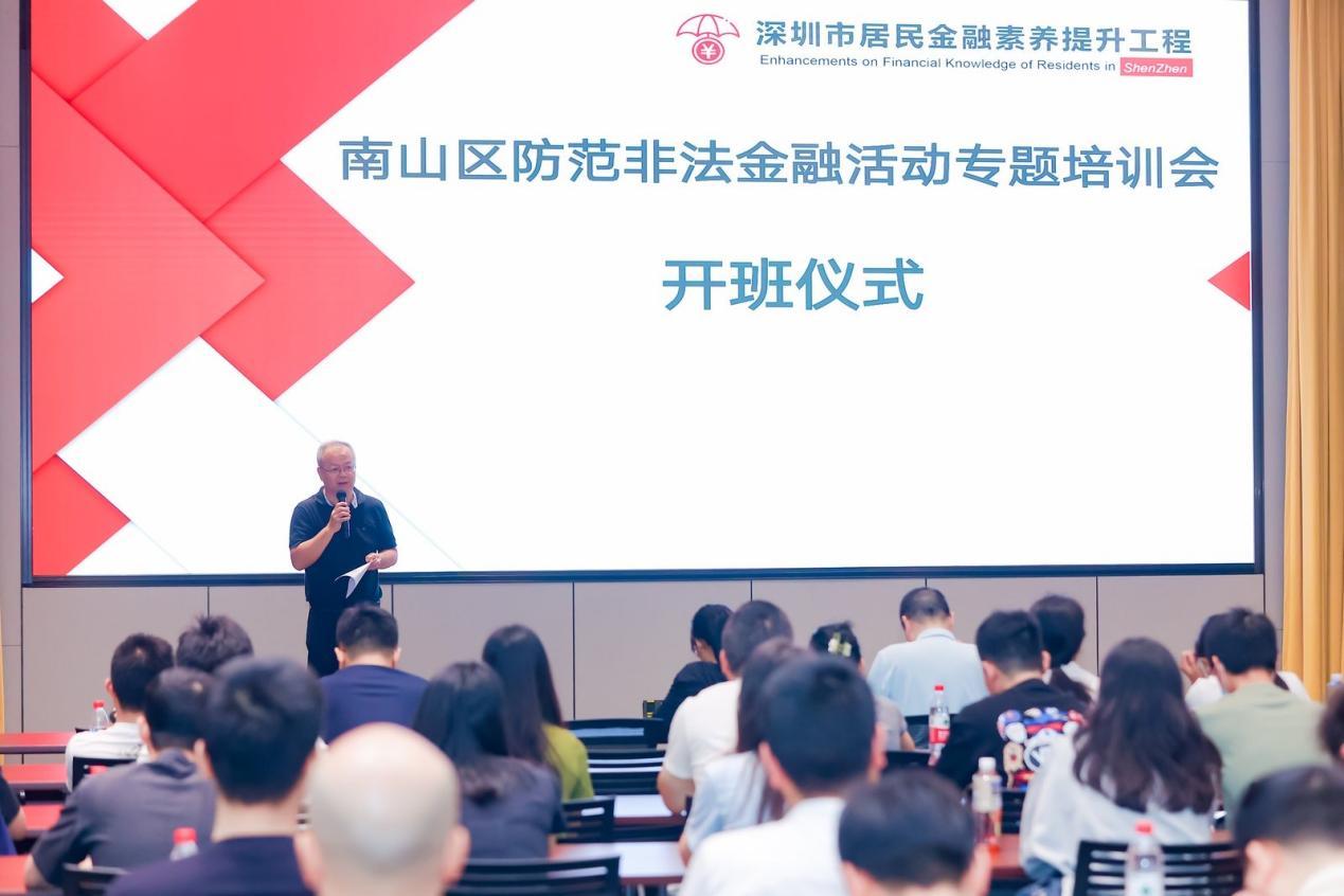 南山区金融发展服务中心五级职员李源同志作开班前讲话,他强调,近年来,随着各类经济活动的日益活跃,非法集资等非法金融活动多发,严重扰乱金融市场秩序,损害人民群众利益。希望大家能够珍惜这次学习的机会,切实把培训期间所思所学所悟转换为履职尽责的本领,坚决把“守护人民钱袋子”作为根本落脚点、出发点,主动靠前共同遏制非法金融活动的高发势态。