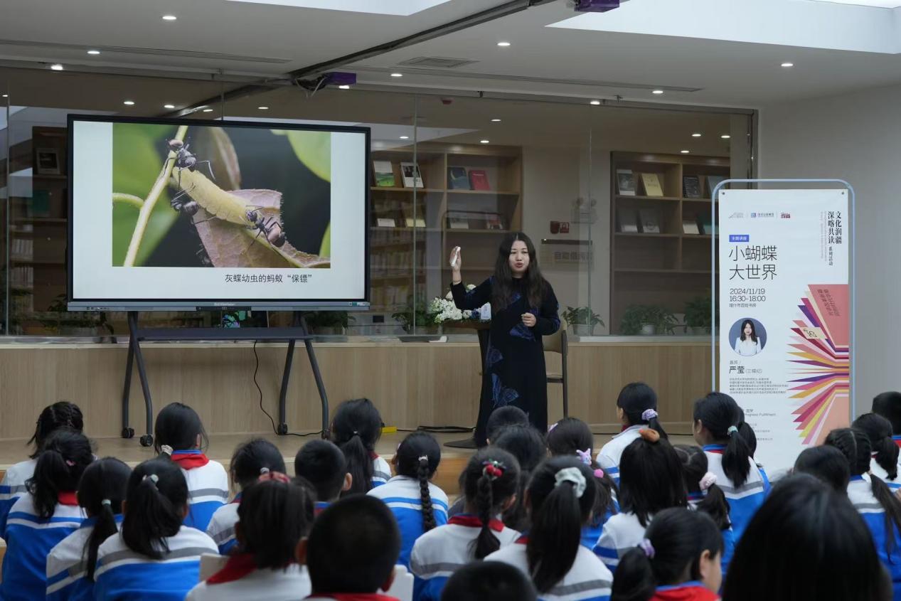 11月19日及20日,第二十五届深圳读书月“文化润疆·深喀共读”系列活动邀请华东师范大学动物学硕士、科普中国特聘专家、知名科普作家严莹老师,走进喀什市百姓书房和喀什市第十一小学,以“小蝴蝶,大世界”为主题,带领喀什师生们探秘蝴蝶世界,解锁生物多样性,畅谈生态保护等重要课题。